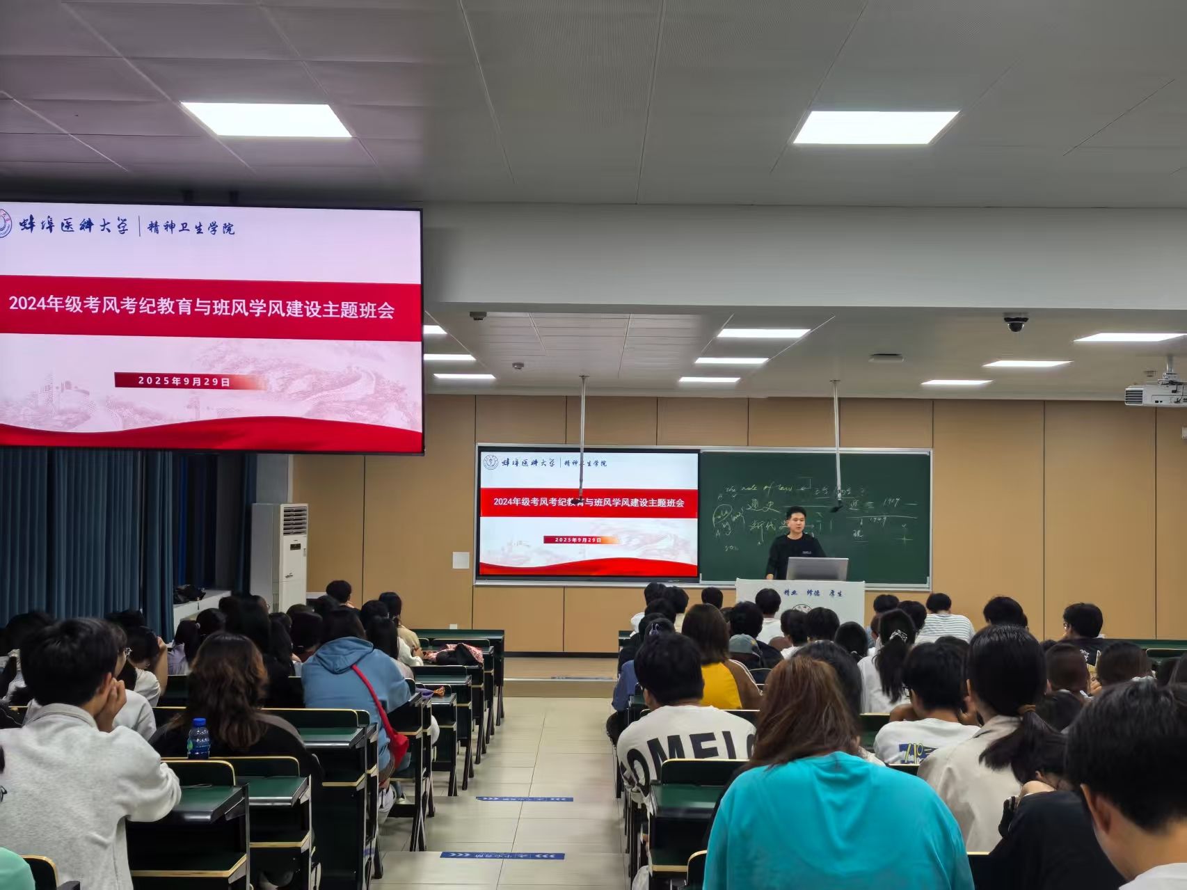 为深入推进班风学风建设、从严强化考风考纪教育、切实提升学生假期安全防范意识,9月29日晚,精神卫生学院 2024 级召开 “班风学风建设与假期安全” 主题班会,班会由辅导员张猛老师主持。