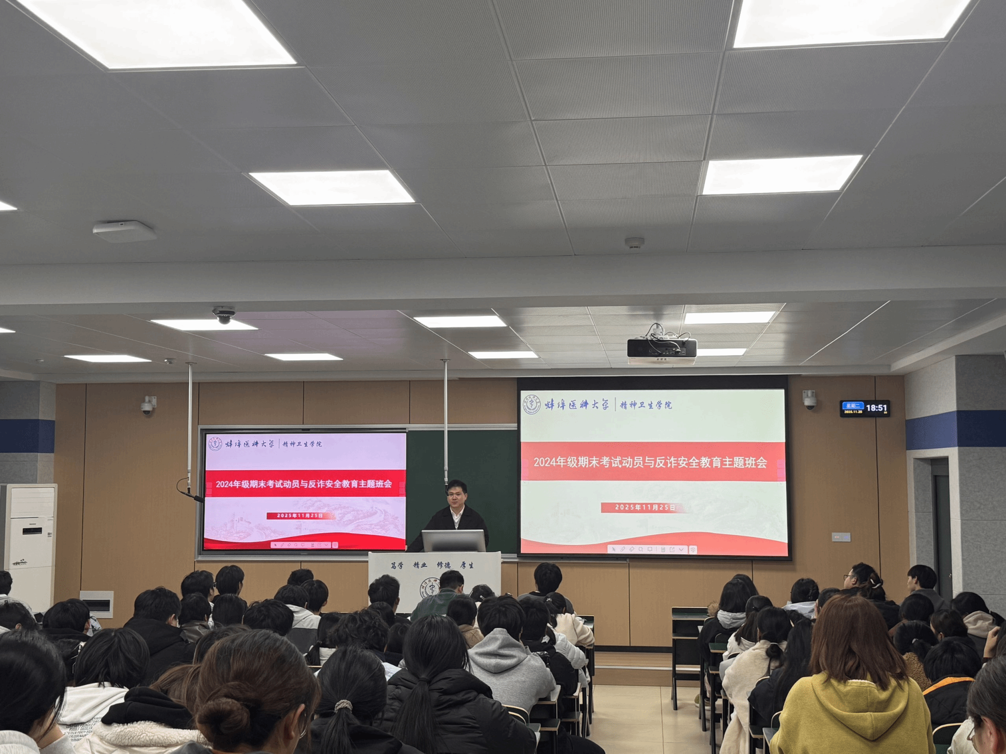 为全面加强学风建设,进一步增强学生安全意识,11月25日晚,精神卫生学院2024级精神医学专业举办“学风建设与安全教育”专题班会。会议由辅导员张猛主持,2024级全体同学参加。