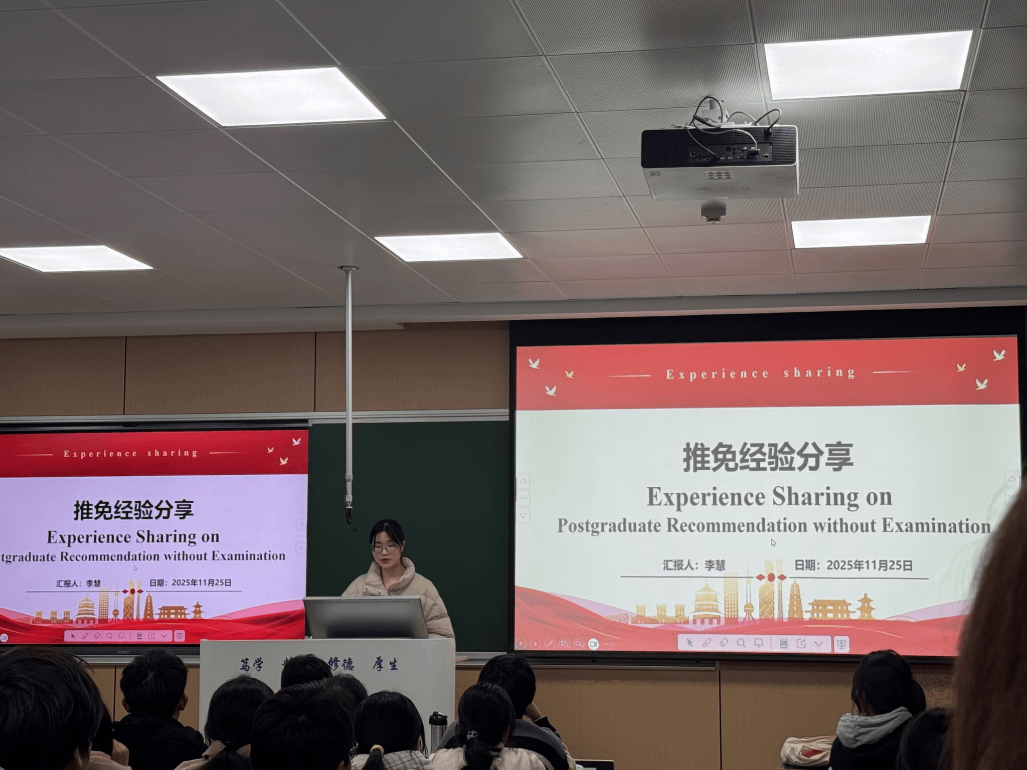 班会伊始,2021级精神医学专业李慧受邀为同学们分享学习科研与保研经验。她系统介绍了学业规划、科研入门与保研准备的全流程,为同学们提供了从日常学习到长期发展的实用建议。在随后的互动中,她对提问一一作出了细致解答,现场气氛活跃。