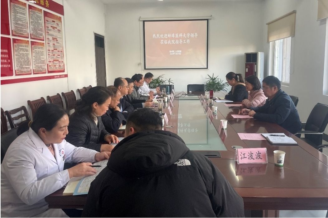 宿州市第二人民医院党委书记魏永对蚌埠医科大学一行的到来表示热烈欢迎,并衷心感谢学校多年来在医院发展、临床带教及研究生培养基地建设方面给予的支持。宿州市卫生健康委党组成员、副主任郭晓冰在会上介绍了宿州市卫生健康事业发展情况,并充分肯定了蚌埠医科大学为宿州地区培养大批医疗卫生人才所做出的贡献;卫健委积极参与蚌埠医科大学的卫健联盟,加强教学、科研等方面的合作;挖掘人才需求,吸纳宿州籍及周边毕业生就业。