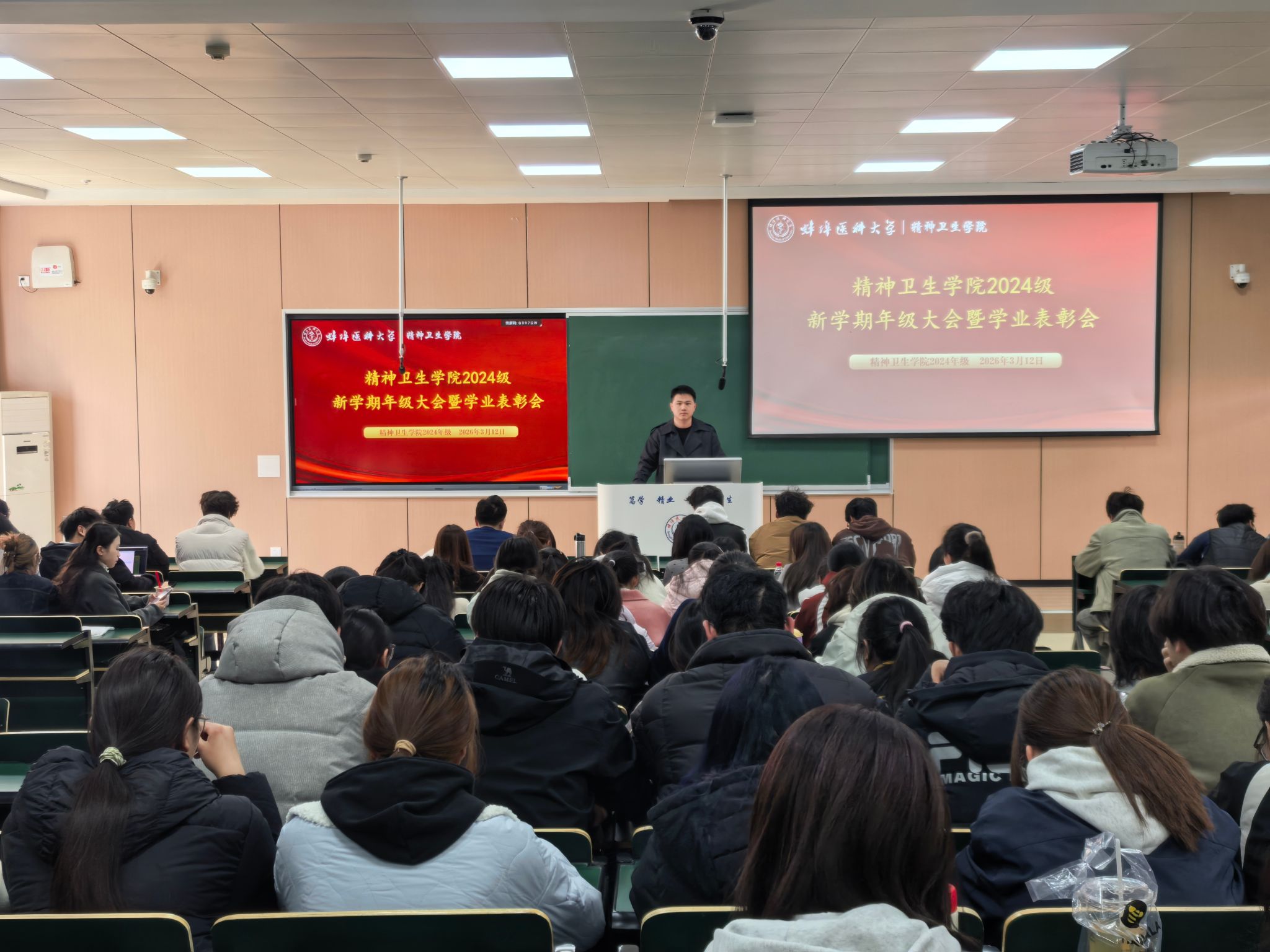 为深化学风建设实效,护航学生新学期成长发展与学习生活,3月13日,精神卫生学院2024级在理论楼104教室召开新学期年级大会暨学业表彰大会。会议由辅导员张猛主持,2024级全体学生参会。