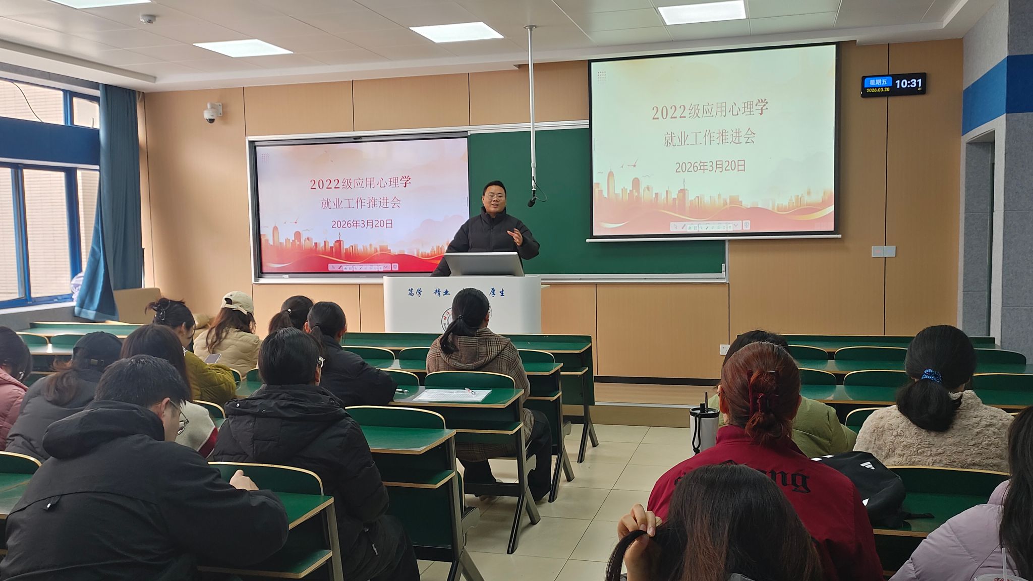 3月20日,2022级应用心理学专业召开就业工作推进会。会议由辅导员郭小虎主持,全体2022级应用心理学学生参会。