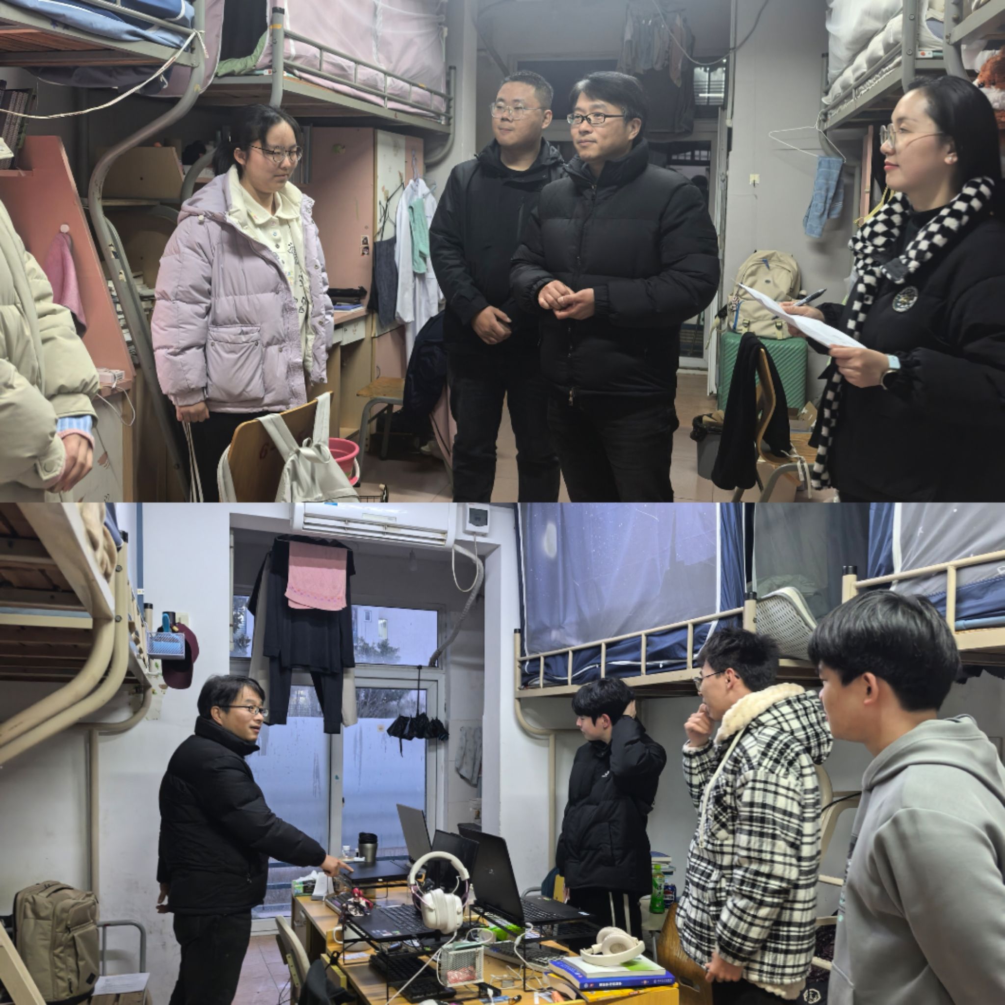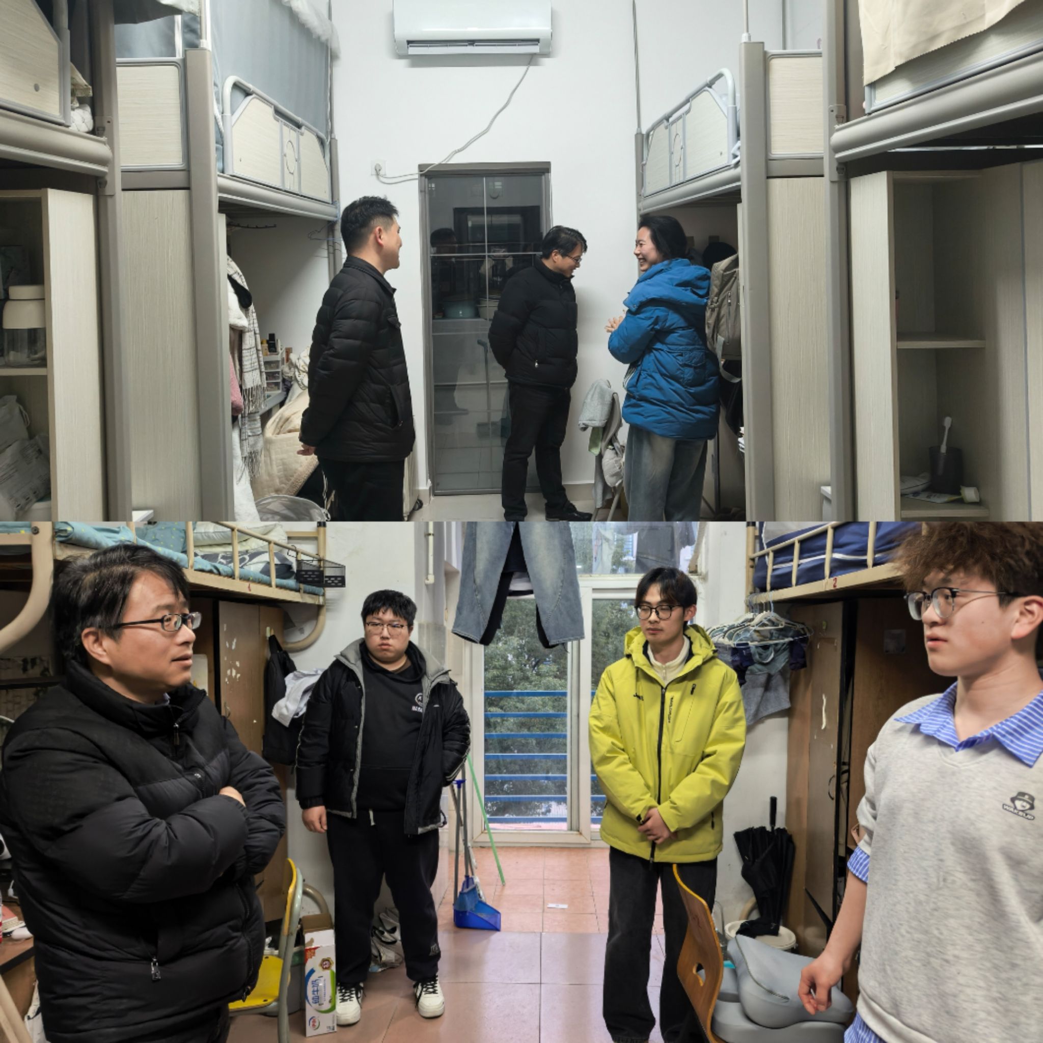 走访过程中,老师们逐一走进宿舍,与同学们面对面交流,详细了解假期生活、返校适应情况及新学期规划,围绕学习状态、作息调整、宿舍安全等方面进行细致叮嘱。在卫生整洁、氛围融洽的宿舍,老师们当场表扬,鼓励同学们继续保持良好习惯,以崭新面貌开启新学期生活。