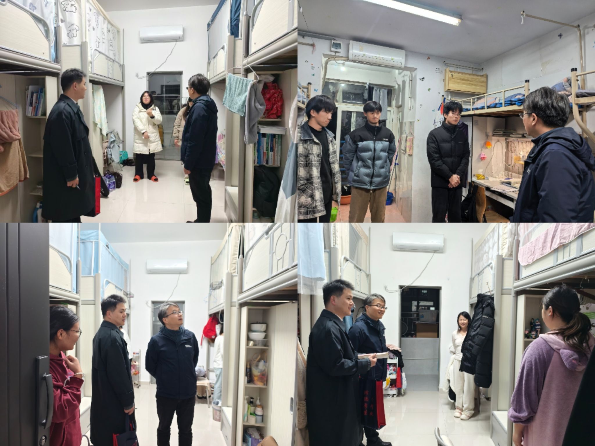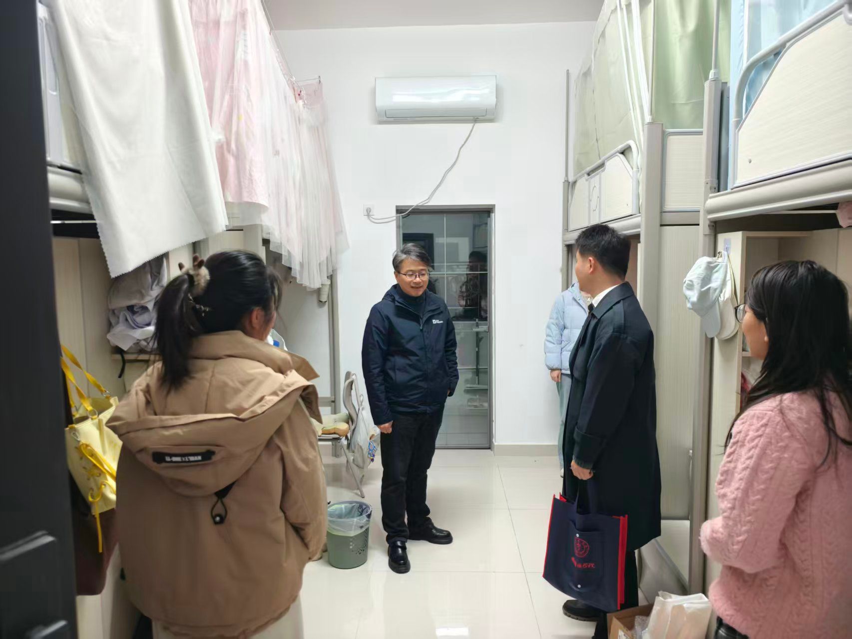 时值秋冬之交,期末将至。为深入了解学生近况,保障其平稳度过学期末,11月19日晚,精神卫生学院党委书记宋松与辅导员张猛一行深入2024级学生社区,开展走访慰问。